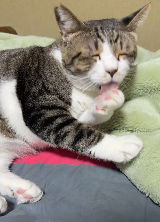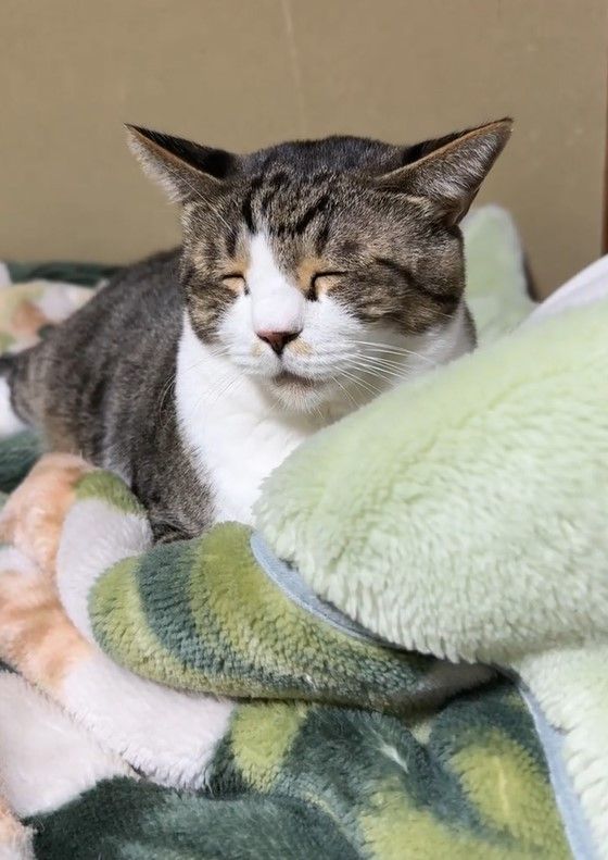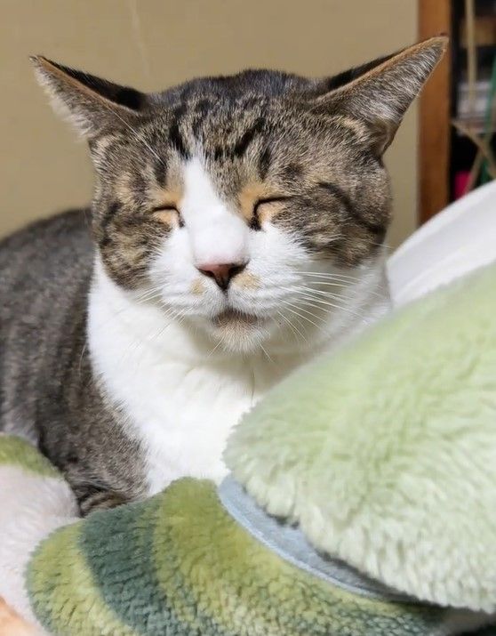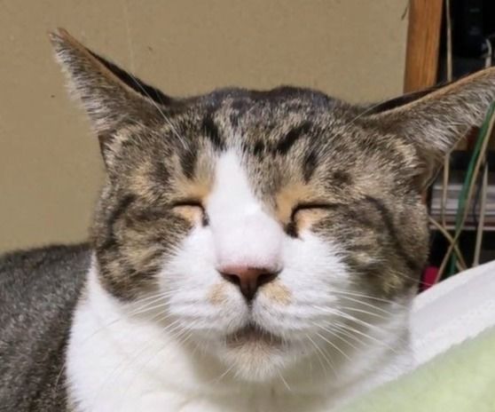この姿がTikTokで公開されると、「しょぼしょぼだけどそれがまたかわいい」「一生忘れられない顔」「見てるとこっちまで同じ顔になっていく」「猫界で初めて見る表情」などの驚きの声が寄せられ、約21万いいね(2024年12月18日時点)がつくほど話題に。