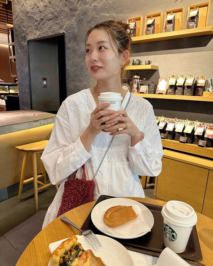 朝早く起きて、井戸田さんとスタバで「朝ごはんデート」をしたことを報告し、オフショットを公開しました。