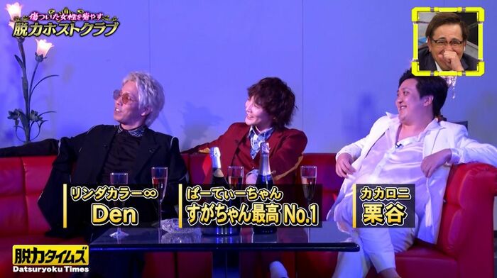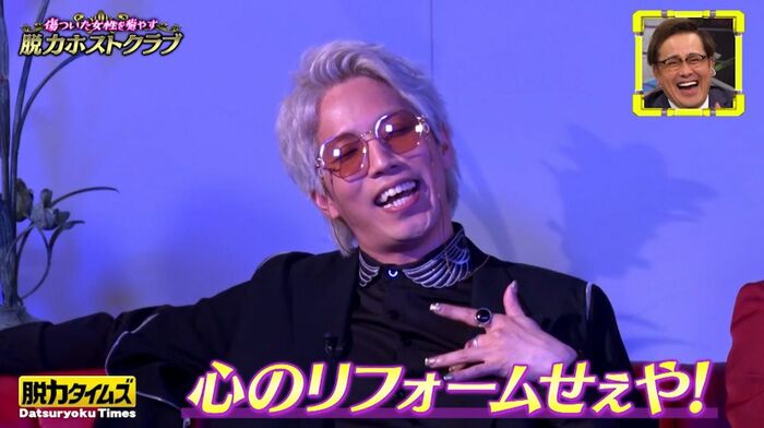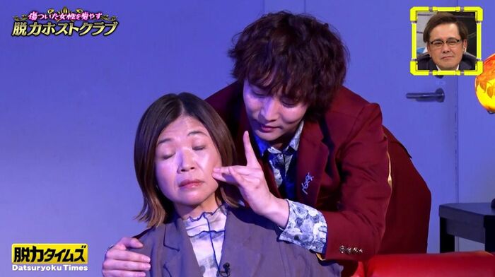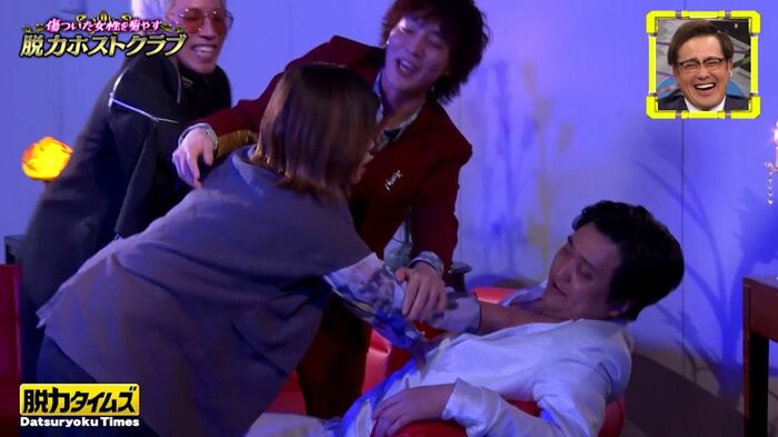 最後は、「こんなVTRを見せられてイライラするわ!」という大久保さんを癒やすため「脱力ホストクラブ」が開店。