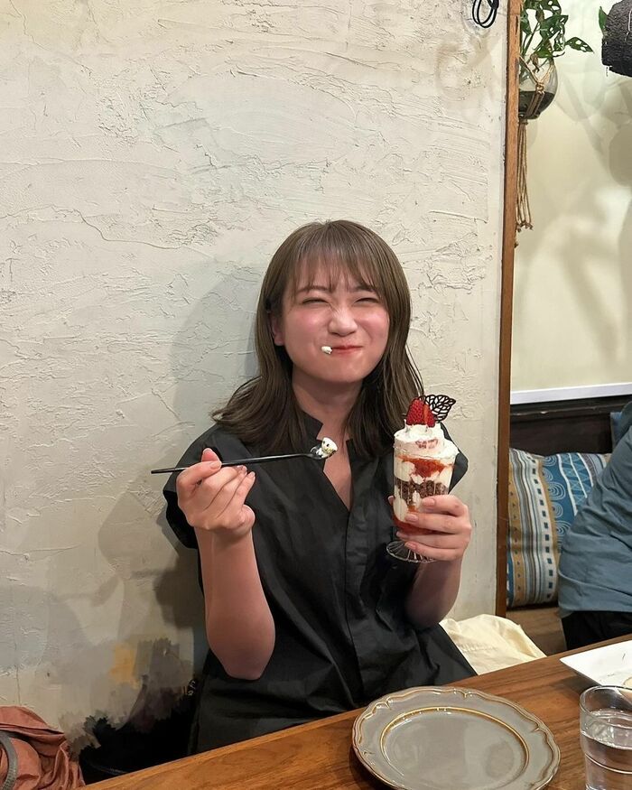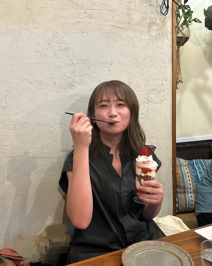 公開された写真には、少し顔が赤くなった姿で、たっぷりのクリームの上にイチゴがのったパフェをおいしそうにもぐもぐ食べるショットや…