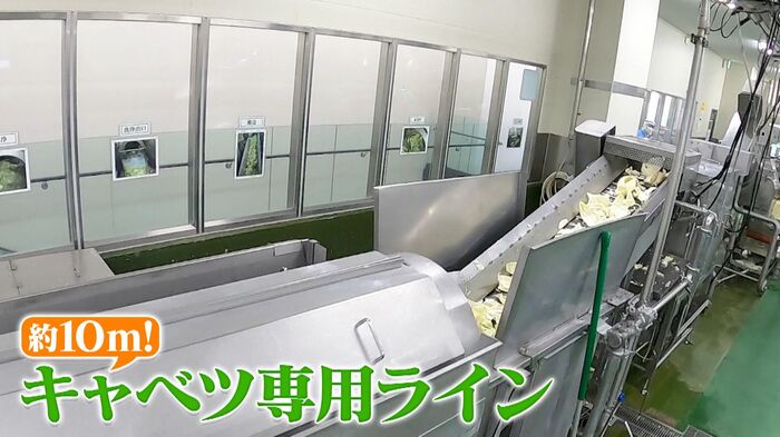 キャベツ専用のラインは約10mあり、その中で順に洗浄しながら細かく刻んでいきます。実は、この切り方一つにも常に改良を重ねているのだそう。