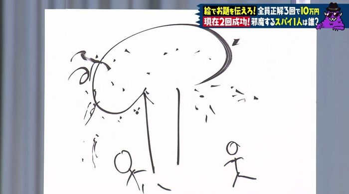 さらに、大吉さんがお題の「ピエロ」を描くと、全員が「ピエロ」と正解するなか、生田さんが一人だけ「ジャグリング」と回答して、一気に疑惑が深まりました。