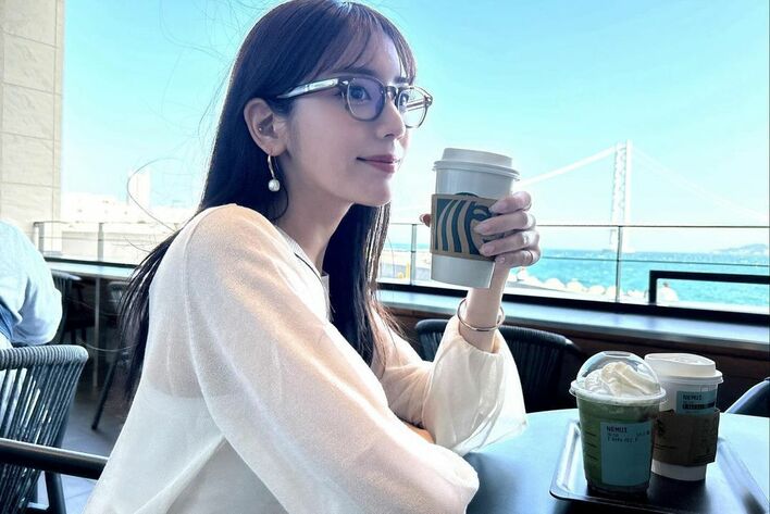 貴島明日香 地元の明石海峡大橋臨むスタバでくつろぎカフェタイム