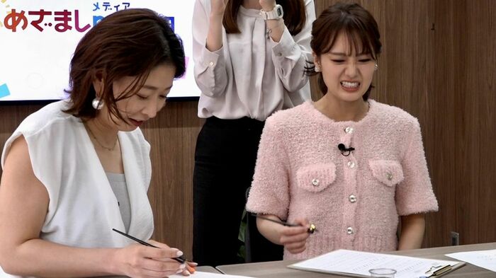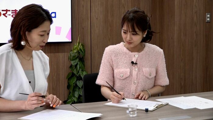 書くことに集中するあまり息をすることを忘れていた井上アナ。