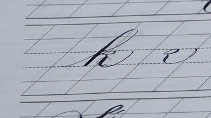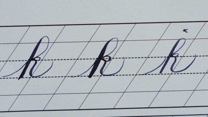 その下に「n」のようなストロークを組み合わせると「k」ができます。