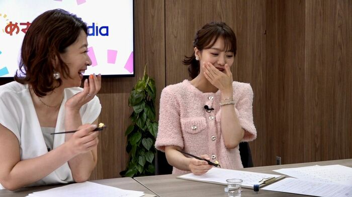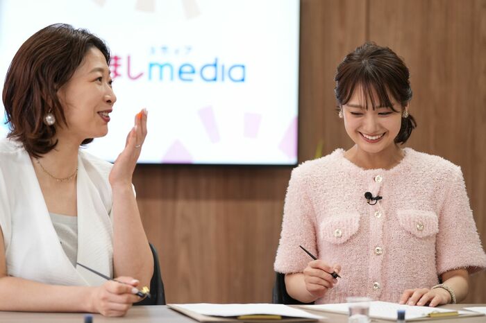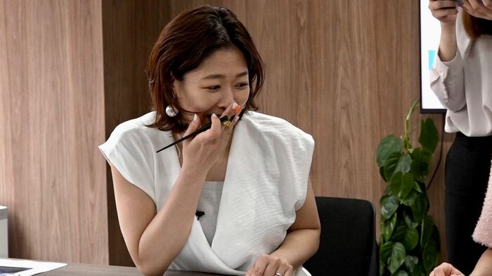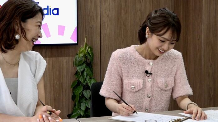島野先生から「素晴らしい!上手ですね!」と褒められ、無事に文字をつなげられた喜びのあまり、井上アナもこの笑顔!