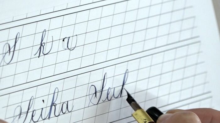 島野先生のお手本が美文字のあまり、井上アナも「すご~い!本当に人が書いているんですね~」と思わず顔と紙の距離が近くなるほど!