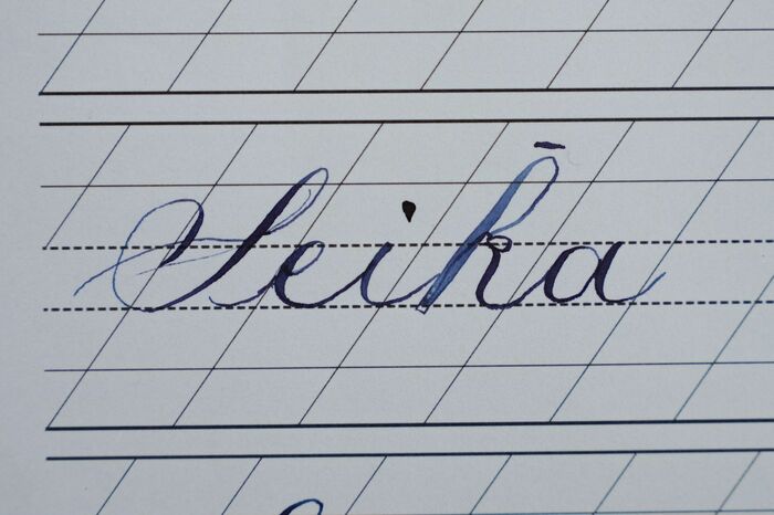 そして次の「i」を書いて、また細いラインで終わっていますが、そこに今度は「k」をつなげて「a」で終わり一つの名前になっていきます。