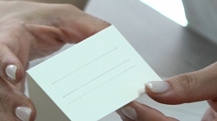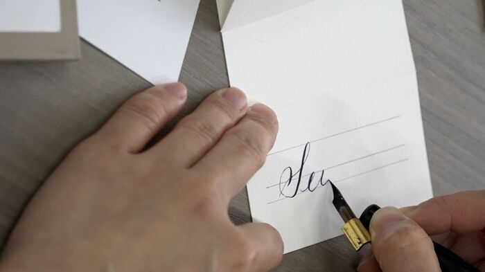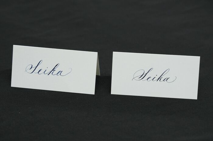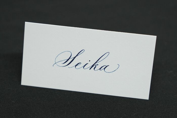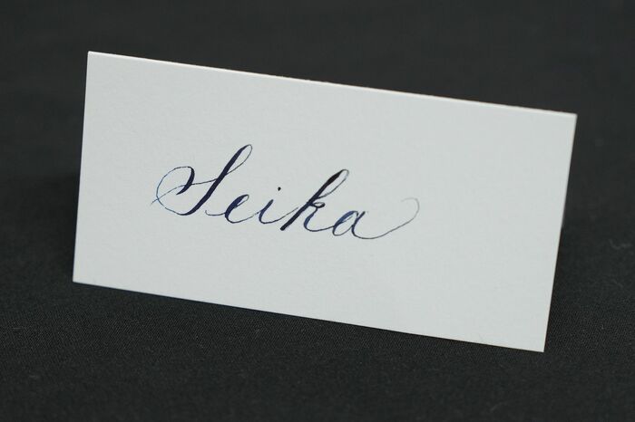 結婚式などのお席札をイメージしたようなカードの画角の中に今まで書いてきた「Seika」の文字を書いていただきたいなと思います。