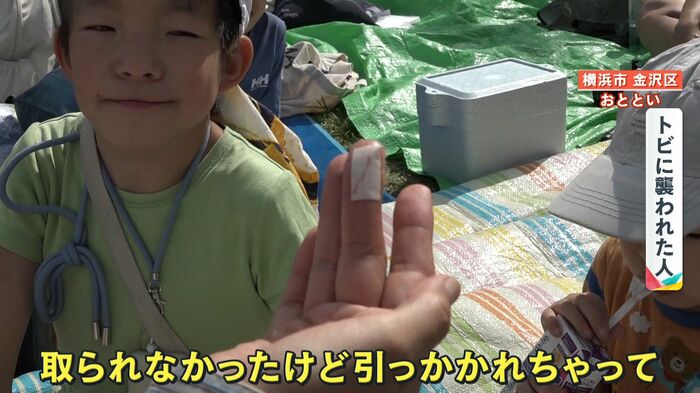 メンチカツを持ってたら、(トビが)取りに来て。で、取られなかったけど、ひっかかれちゃって。子供たちじゃなかったから良かった。
