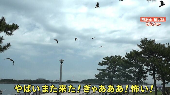 テーブルに向かって急降下してくるトビに驚いた子供たちは…