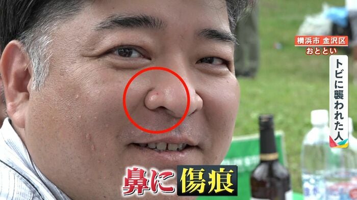 ピザを食べようとした瞬間、襲われたという男性。鼻には傷跡が残っていました。