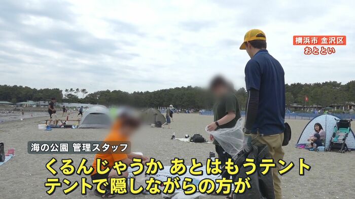 (袋の)上が空いてたりすると…、もうくるんじゃうか、あとはもうテントで隠しながらの方が。