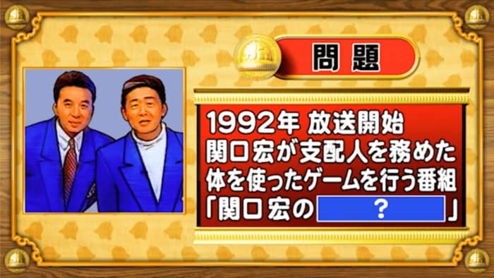 今から32年前の1992年に放送開始。関口宏さんが支配人を務めた、体を使ったゲームを行うバラエティ番組『関口宏の[?]』。「?」に入る言葉は何でしょうか?