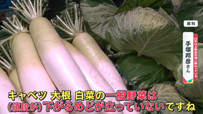 キャベツ・大根・白菜なんかの一般野菜は(値段が)下がるめどが立っていないですね。