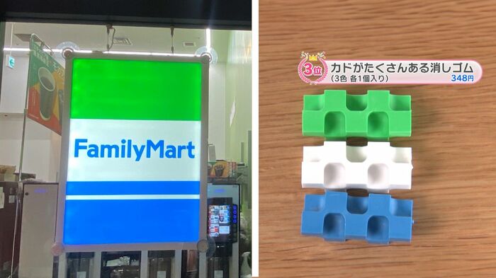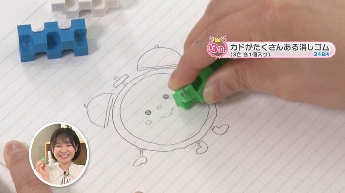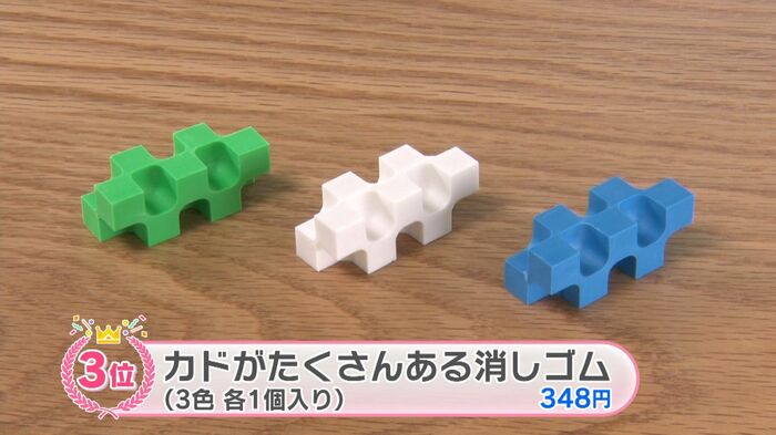 第3位「カドがたくさんある消しゴム(3色 各1個入り)」348円