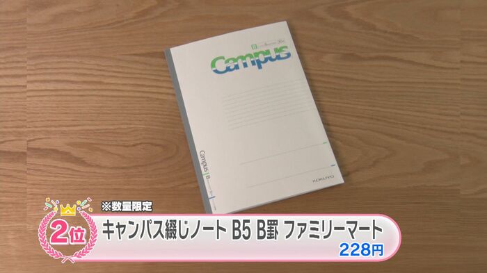 第2位「キャンパス綴じノート B5 B罫 ファミリーマート (1冊)」228円