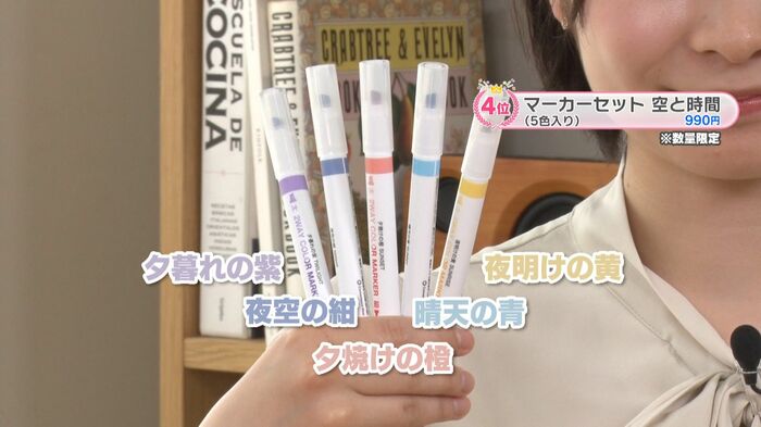 第4位「マーカーセット 空と時間 (5色入り)」990円