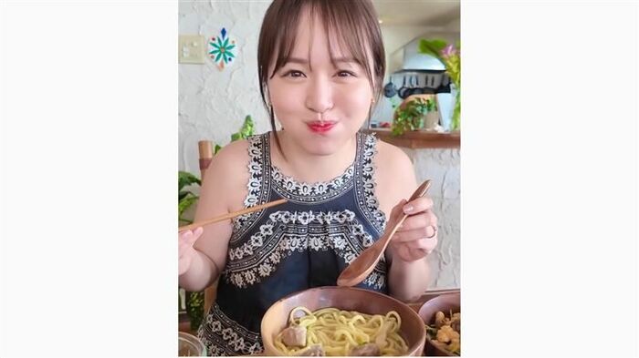 「うまっ!」とニコニコで麺料理をおいしそうにもぐもぐ食べる姿も見せています。