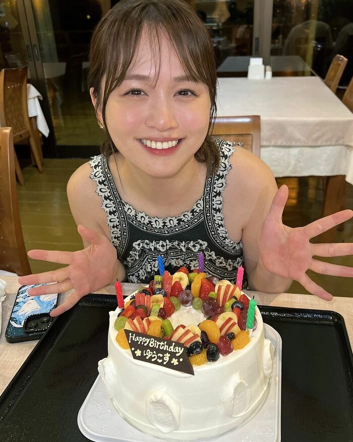 2024年5月20日に30歳を迎えたゆうこすさんは「サプライズで30歳のお祝いしてもらった」と、フルーツがたくさん乗ったケーキを前に笑顔を見せたショットを公開しています。