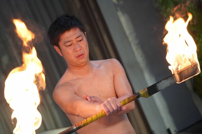 火の恐怖に慣れてはきたものの、大技「火をなめる」は、怖くて練習では一度もできず。はたして、本番でショーを成功させることはできるのでしょうか?