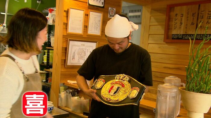 岡澤選手は「これぐらいしかできないですけど…」と謙遜しつつも、オリンピック出場を決めた選手しか持つことができないというベルトをお店の人に見せます。その重さに驚く店員さんたちでしたが、「ありがとう持ってきてくれて」と喜んでいる様子でした。