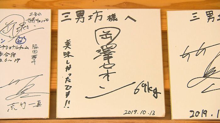 店には2019年に岡澤選手がサインした色紙が飾ってありました。