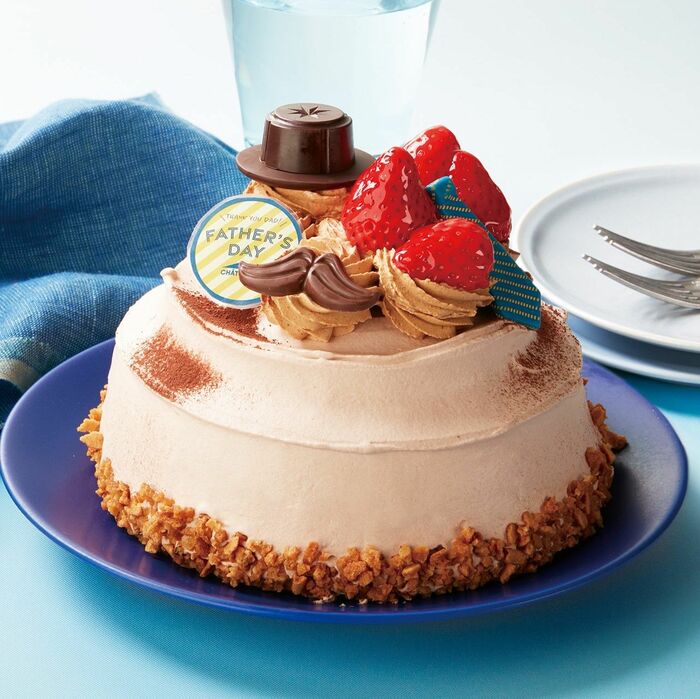 帽子をかぶったおしゃれなお父さんをイメージした、見た目もかわいいケーキもイチオシです。