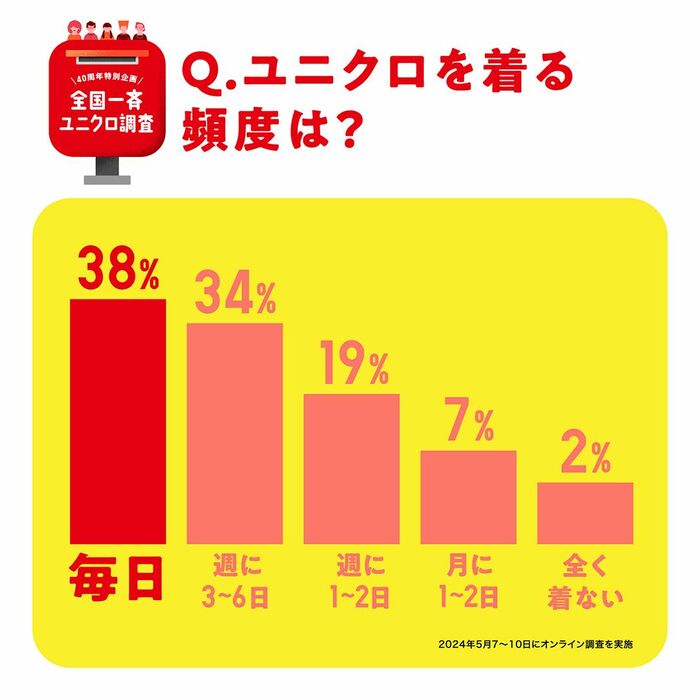 約4割の人に関しては、毎日ユニクロを着ていることがわかりました。