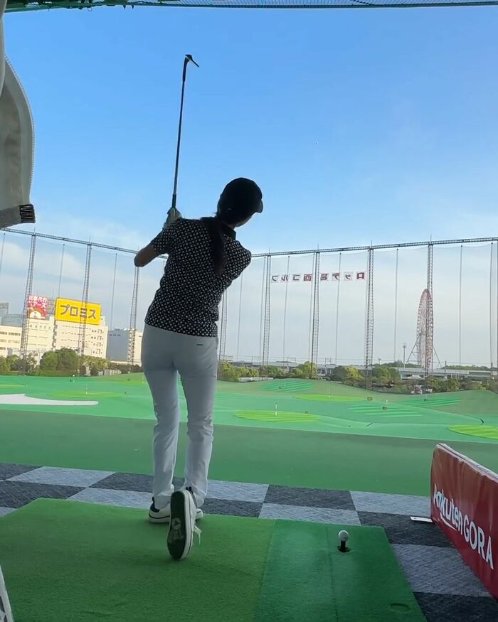 フリーアナウンサーの鷲見玲奈さんが2024年5月20日、自身のインスタグラムを更新、産後初めてのゴルフ打ちっぱなしでゴルフウェア姿を披露しました。