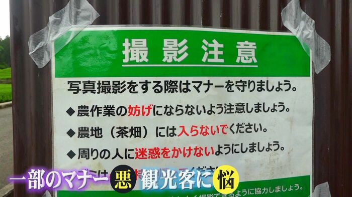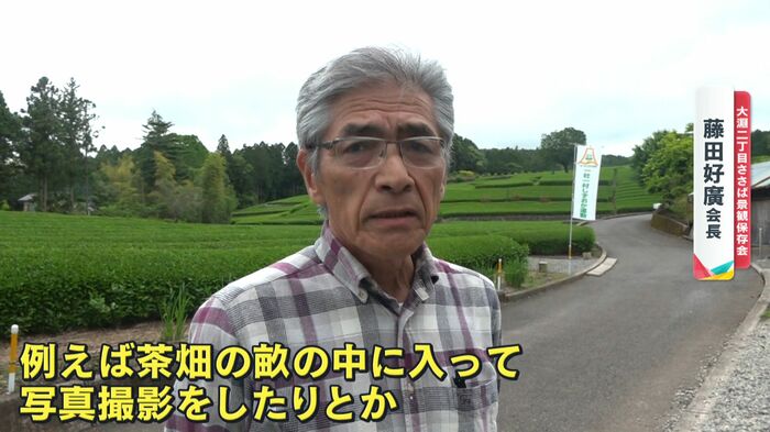 例えば茶畑のこのまあ畝の中に入って写真撮影をしたり、大声を出したりだとか、そういったところが見受けられます。