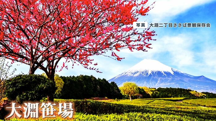 静岡県富士市にある茶畑越しの富士山が美しい「大淵笹場」。