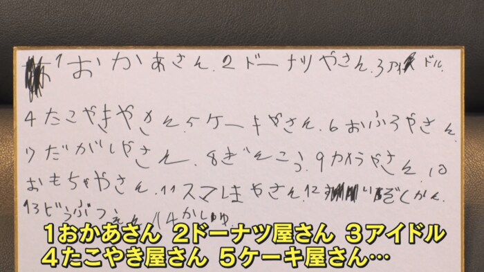 1おかあさん、2ドーナッツ屋さん、3アイドル、4たこやき屋さん、5ケーキ屋さん…