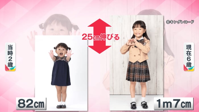 ののちゃんの身長は、2歳のデビュー当時82㎝だったそうですが、4年で25㎝も伸びて1m7㎝になったそうです。