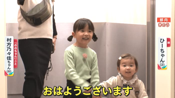 現在6歳になったののちゃんは、お姉ちゃんになり、2歳になる妹・ひーちゃんの手を引いてスタジオ入りです。