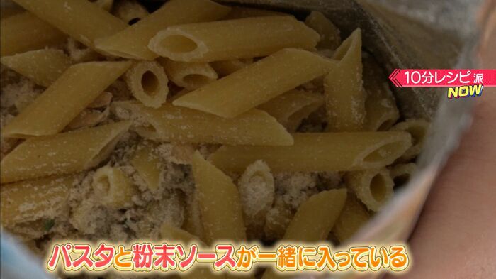 実はこの商品、袋の中にパスタと粉末ソースが一緒に入っているんです。