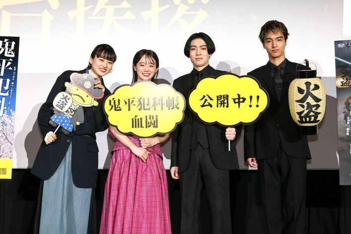 現在公開中の劇場版『鬼平犯科帳 血闘』の公開御礼舞台挨拶が行われ、若手キャストである市川染五郎さん、中島瑠菜さん、阿佐辰美さん、菊池日菜子さんが登壇しました。