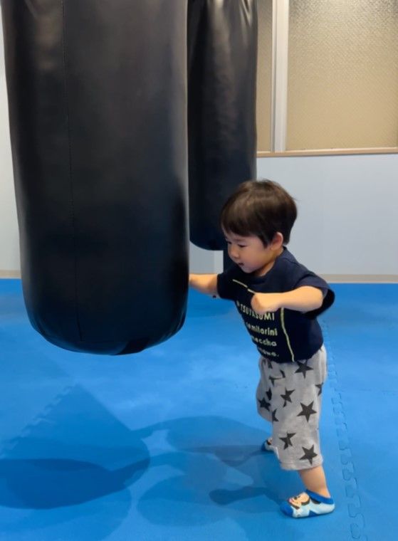 パパの経営するボクシングジムでは、いつもパンチのまねをしているんだとか。