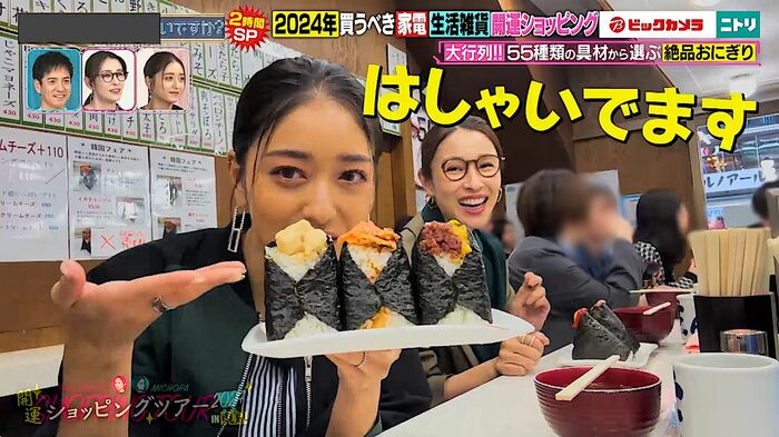 池田さんは、ふっくら大きなおにぎりにかぶりつくと、「おいしい!握り方がやさしい」と絶賛。水野さんも「めちゃくちゃ美味しい!」と大満足の様子で、夢中で食べていました。