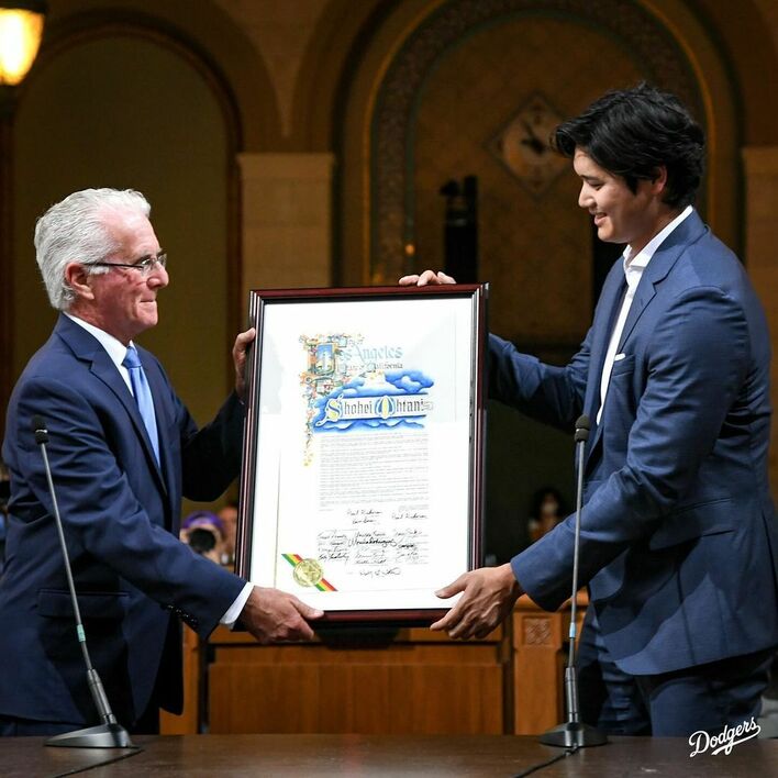 ロサンゼルス市は、大谷選手のプレイヤーとしての功績に加え、日本人としてロサンゼルスに与えた歴史的な影響力を称えました。