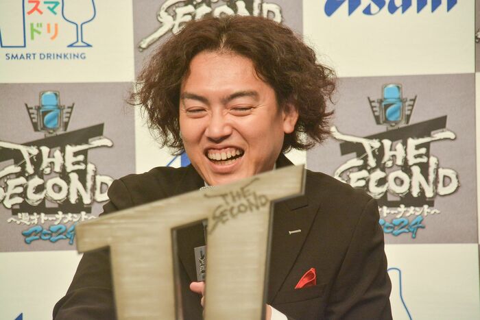 トロフィーを掲げて満面の笑みで優勝者会見場に現れた2人は、「まだ全然実感がなくて、あと2本ネタをせないかんようなテンションです」(奥田)、「優勝したらこんなにLINEが来るんやなって。300くらいきてました」(よじょう)と、興奮冷めやらぬ様子でコメント。