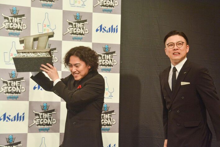 ザ・パンチとの決勝戦を制し、大会史上最高得点で優勝したガクテンソクには賞金1000万円とトロフィー、副賞が贈られました。
