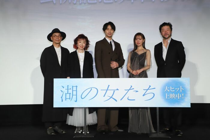 映画『湖の女たち』の公開記念舞台挨拶が5月18日に行われ、W主演を務めた福士蒼汰さんと松本まりかさん、三田佳子さん、浅野忠信さん、大森立嗣監督が登壇しました。