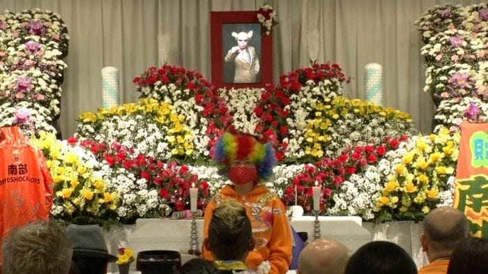 35年、ハチャメチャな夫に連れ添った妻の由紀さんは、南部さんをみんなで明るく送り出したいと、ド派手な衣装を身にまとい、葬儀の喪主をすることになりました。