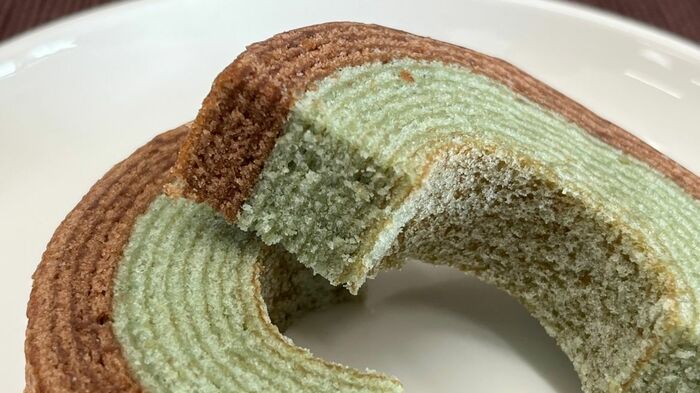 次に、外側がチョコで内側がミントの2層構造のバウムクーヘン。