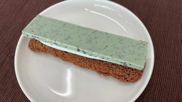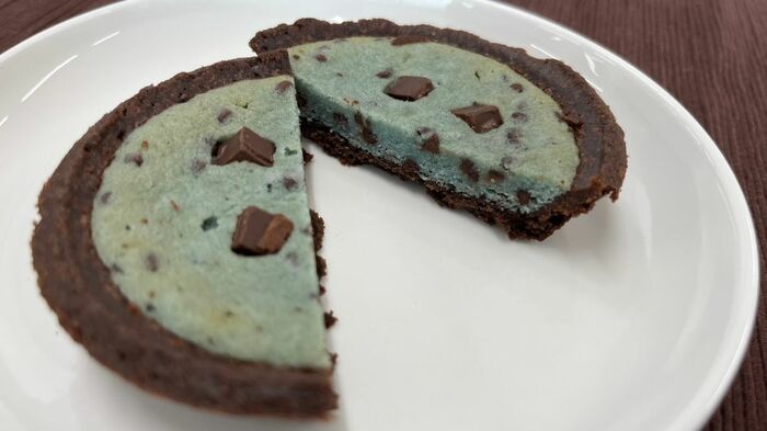 最後は、ココア風味のクッキーの上にミント味の板チョコがドーン!と乗った豪快なチョコミントスイーツ。