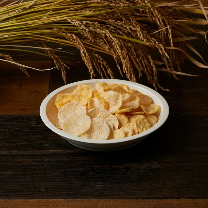 「ふわっと軽いチップス」(各150円)は米粉を蒸して一度乾燥させて水分を飛ばし、最後にフライすることで食べやすい軽い食感に。