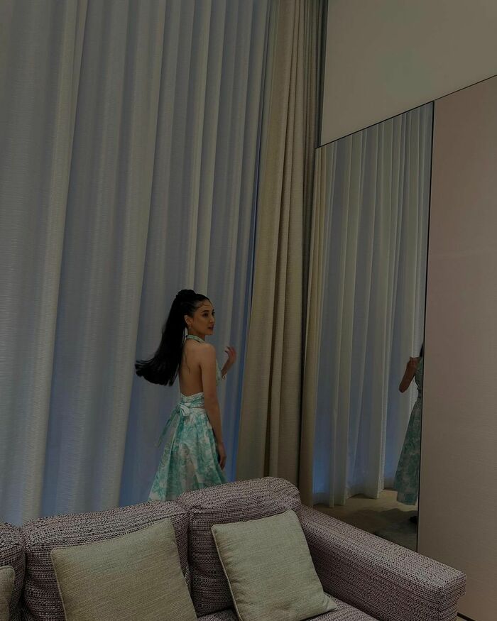 また、エメラルドグリーンカラーのようなワンピースに身を包んだ全身ショットも公開。