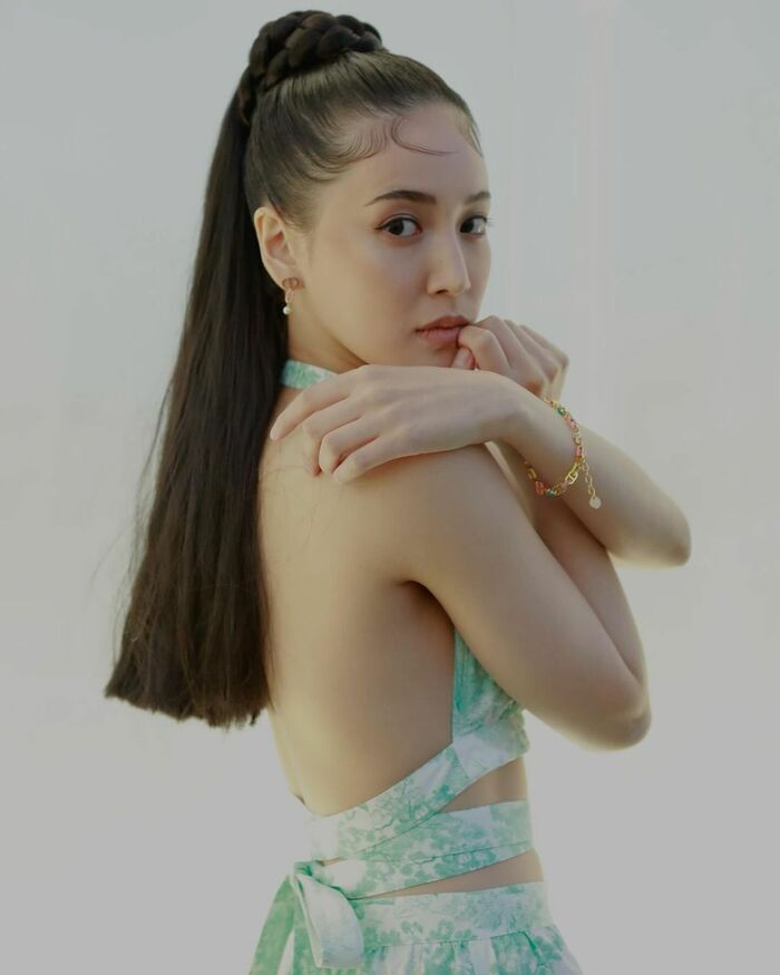 さらに、大胆に背中を見せたショットも披露しています。