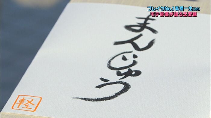 当時「2017年 上半期ブレイク俳優ランキング第1位」を獲得したばかり、政治がテーマのドラマに出演していた高橋さんに、軽部アナは“袖の下”として「おまんじゅう」と書かれた小判が入った箱を渡し、恋愛観に迫りました。